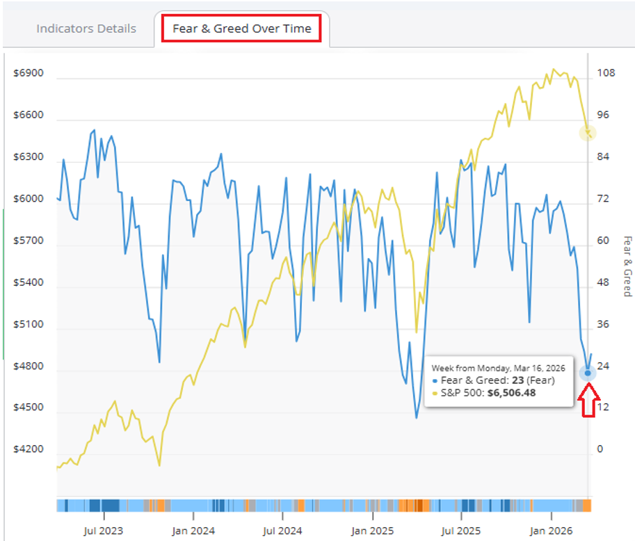 As of Monday, March 16, Fear & Greed hit a low of 23 (Fear), which is just 3 points away from the “Extreme Fear” level that has consistently signaled market lows in the past.