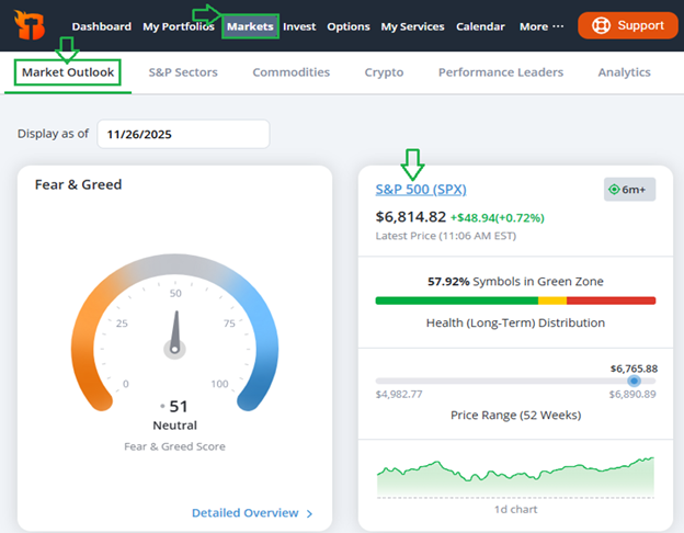 Subscribers with access to this valuable data can simply click on the Markets tab from the main menu bar, then select Market Outlook.