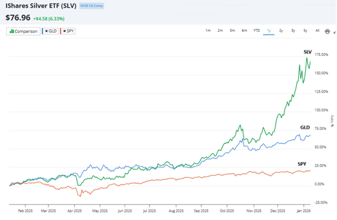Both precious metals have put the stock market’s returns to shame over the past year. But for silver there was more at work than only its store-of-value attributes. The Chinese government slapped new export restrictions on silver starting New Year’s Day 2026.