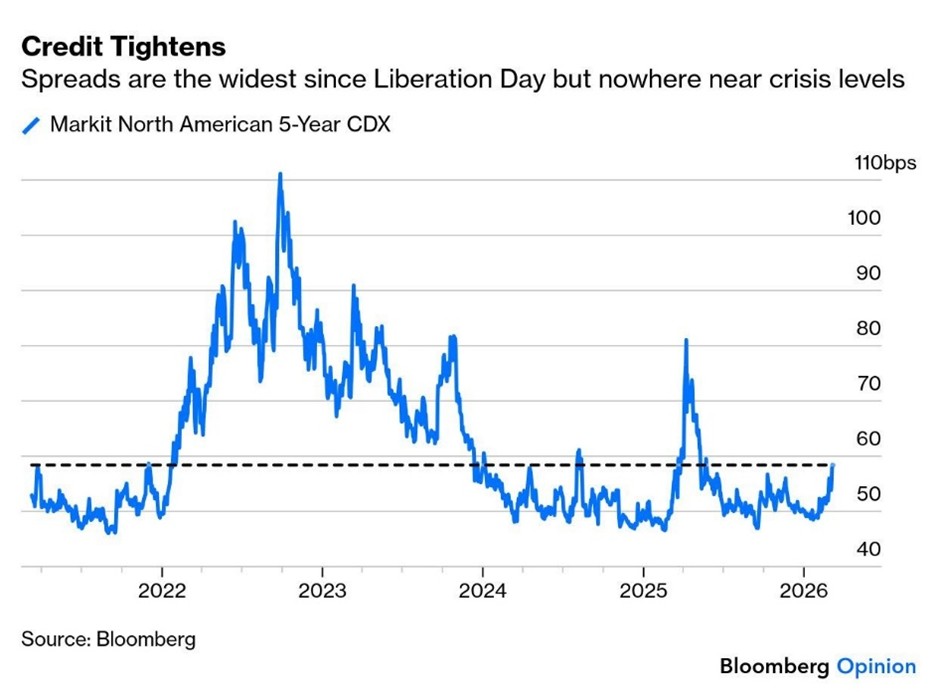 As you can see above, credit default swap spreads just spiked to the highest level since the tariff trauma this time last year.
