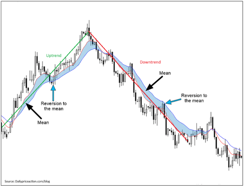 Reversion to the mean, as illustrated above, happens on a regular basis in both uptrends and downtrends. But we haven’t experienced much mean reversion recently…