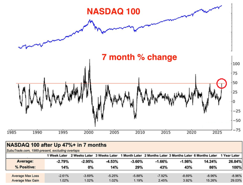 The Nasdaq 100 Index has been up for the past 7 months straight, gaining over 50% during this remarkably strong uptrend.